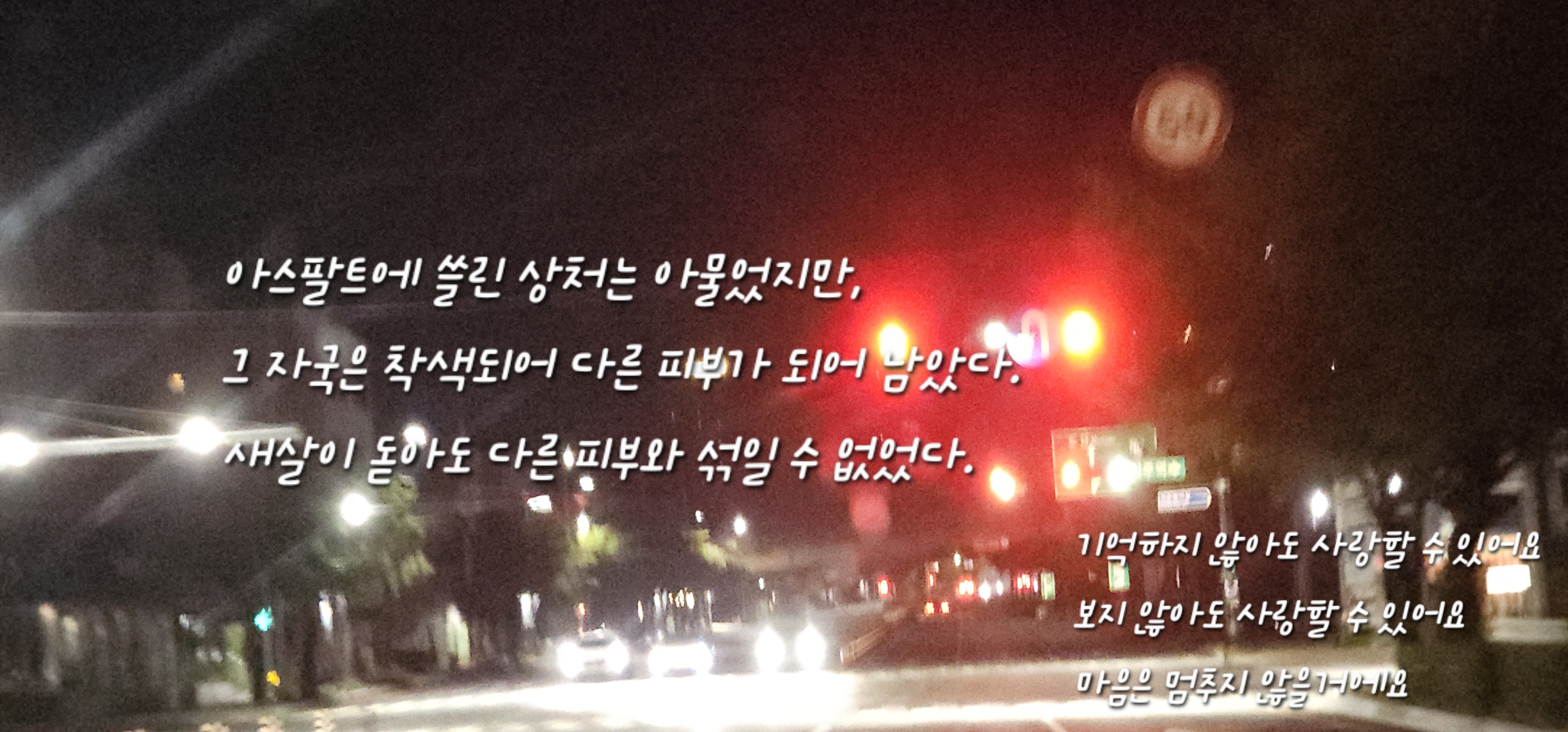 변해야 하는 당신에 대한 마음은 꿈쩍도 않고서, 손끝에서 피어나는 무수한 글만 변합니다. 애석하게도요.