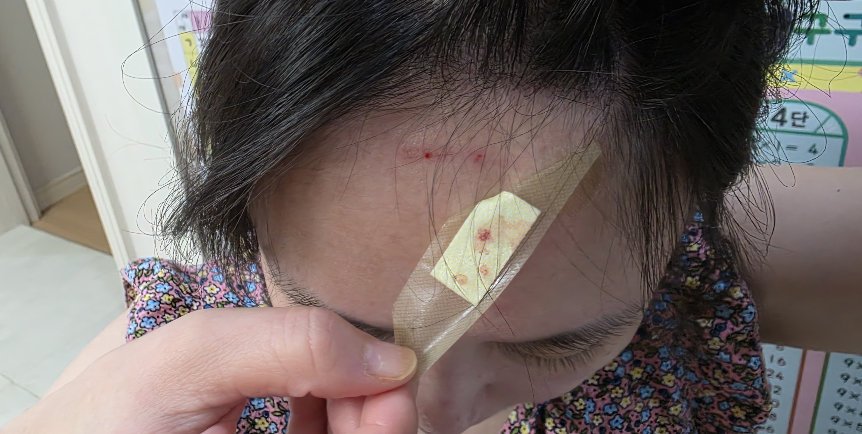 나는 물었다. 이마를 까서 상처를 들여다봤다.