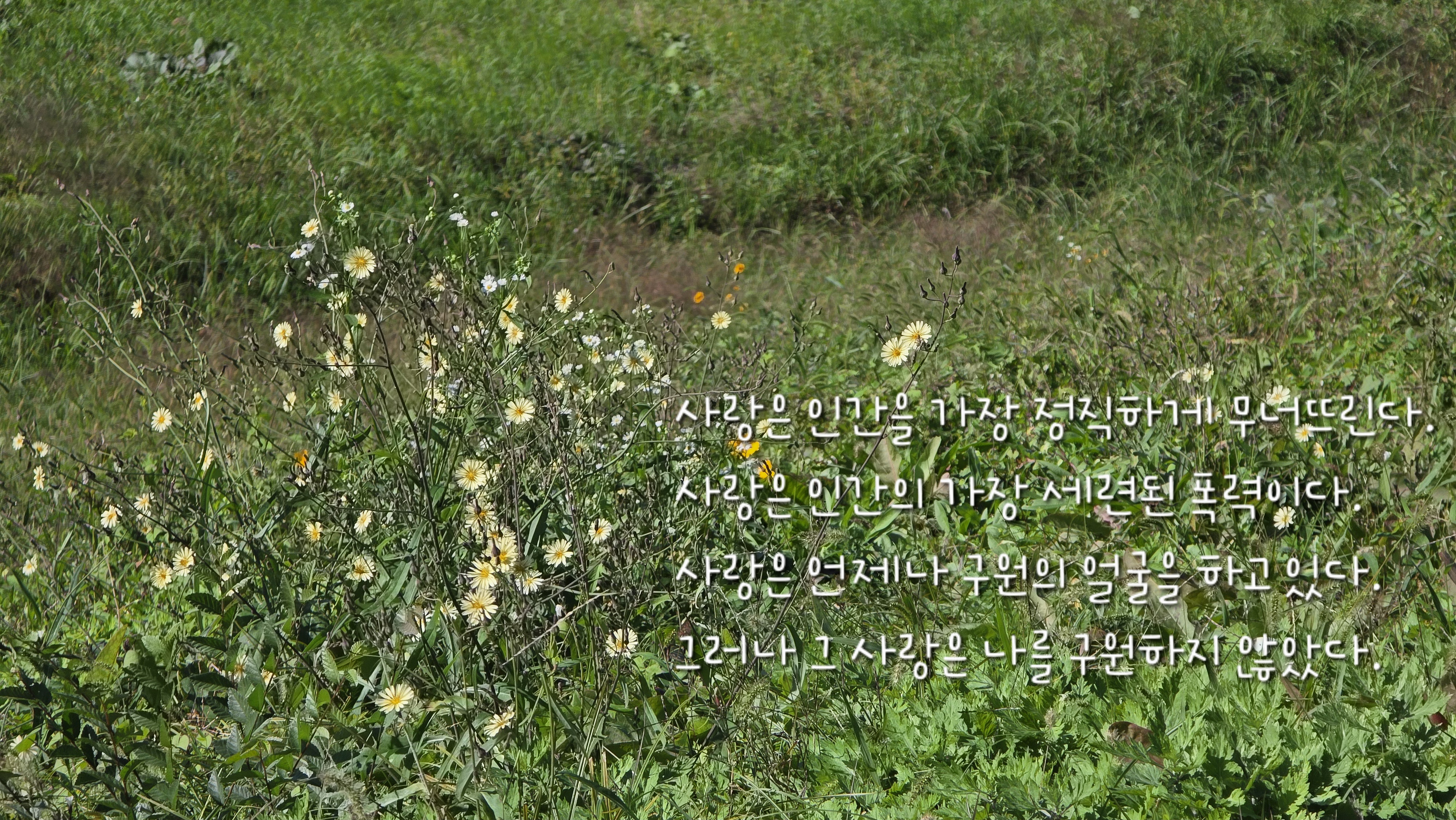 당신의 하루가 무해하고 무탈하기를, 하여 당신이 행복하기를 바라요. 나는 여전히, 가느다란 몸 마디마디 마지막 온 힘을 다해 흔들리는 당신을 계속 붙잡고 있지만요..