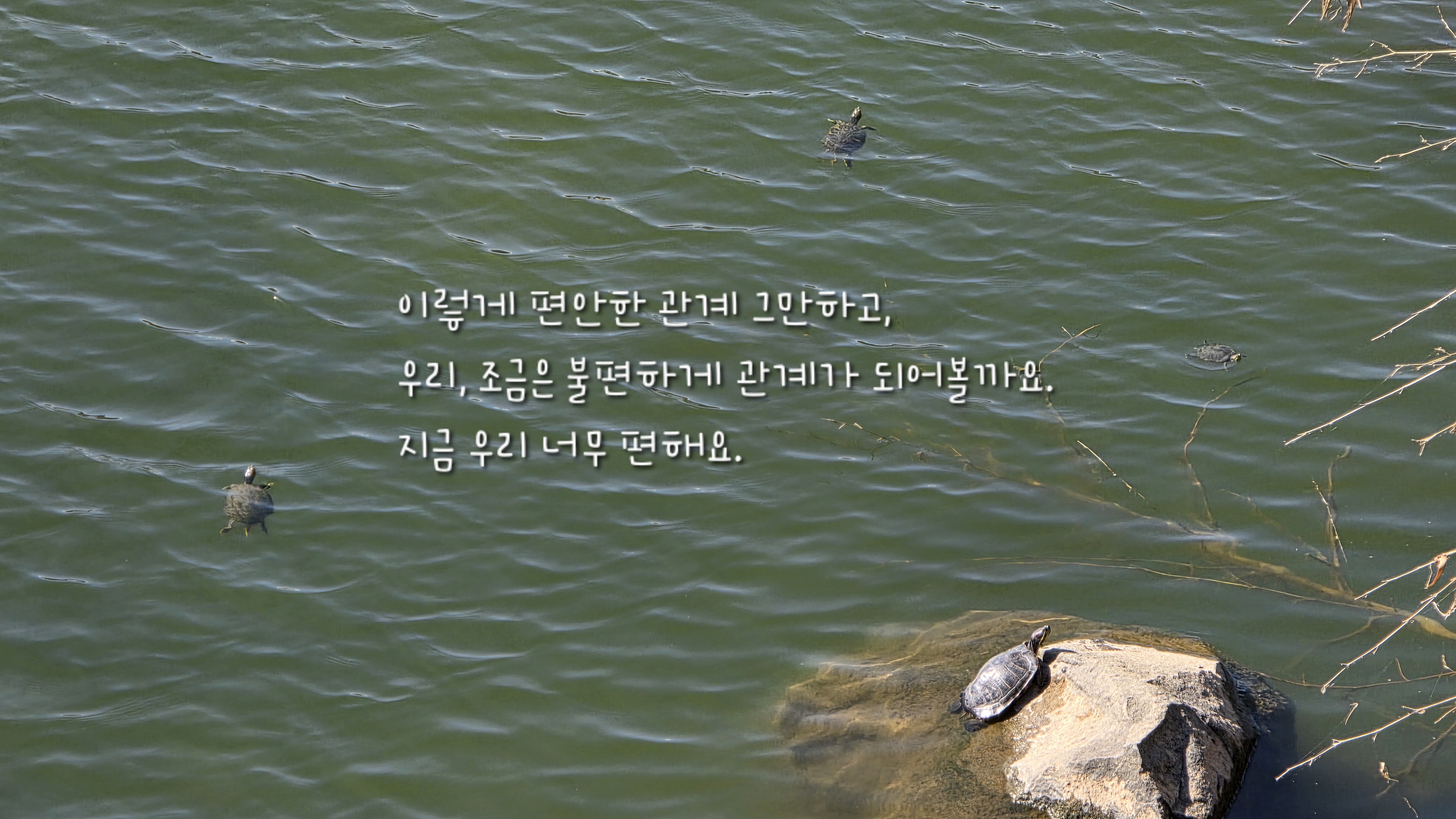 그와는 조금 더 가깝게 지내야 한다. 뮤즈로 삼아보려 하기에. 그러기 위해서는 그와의 가까운 관계를 조금은 떨어뜨려놔야 한다. 그는 나를 놀려대기 바쁘고, 나는 눈 흘리기 바빠 다른 사람들이 보기에는 진짜 오누이로 보기 때문이다. 편의점 사장님은 나와 그가 닮았다고 했으니까..