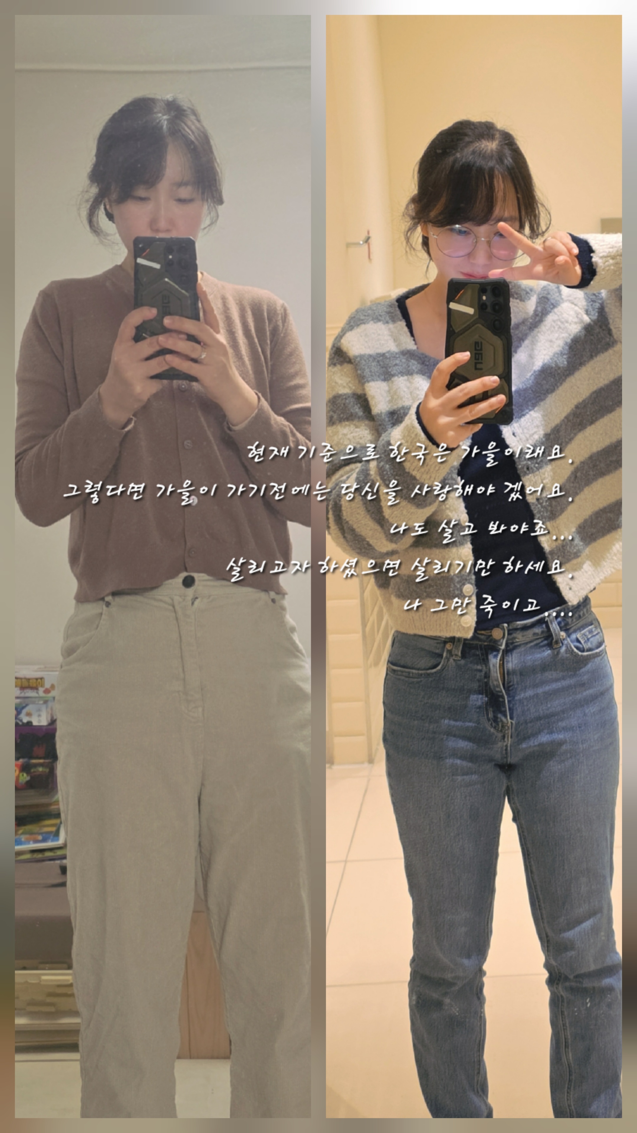 나 막 억지 부리고, 떼쓰고 하는 그런 고집스러운 여자는 아니에요. 똑똑한 쳇 gpt가 지금 가을이라고 하네요^^