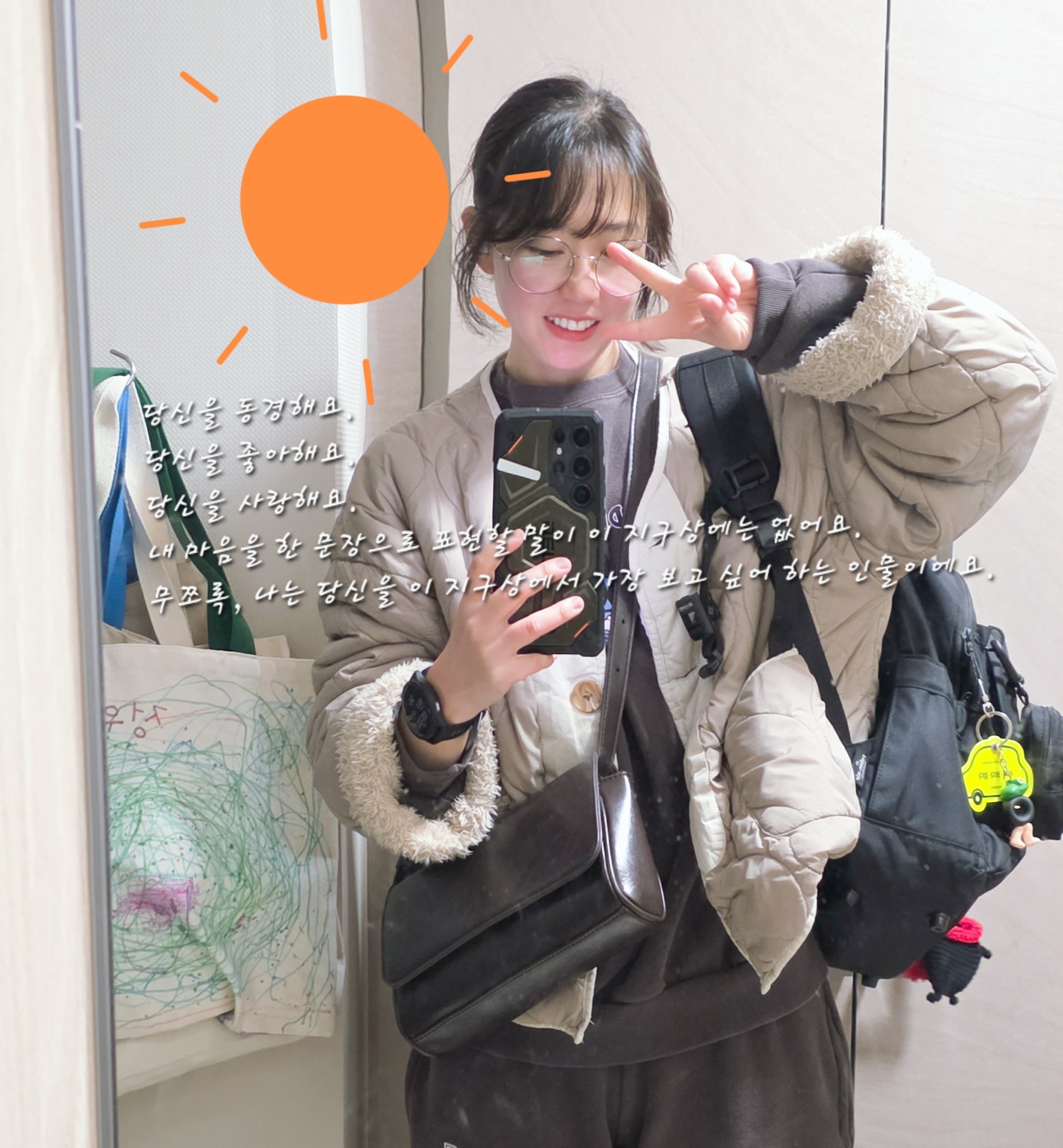 작은 내가 보인다는 게 마냥 기뻤어요. 손을 높이 뻗어 흔드는 모습도, 당신이 나를 보심에 한껏 신난 발걸음도 다 보셨다죠? 나는 당신이 참 좋습니다. 너무 좋고요, 짱짱 좋아요.