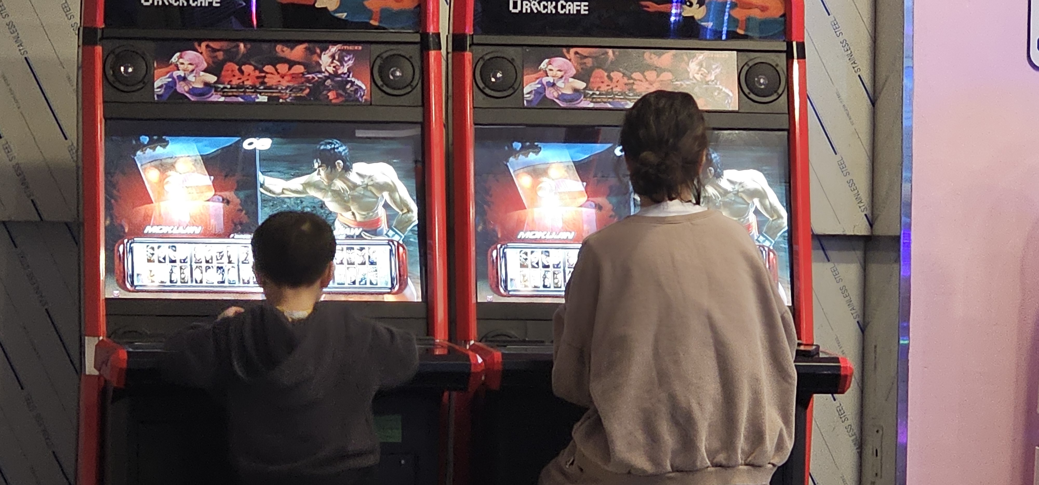 첫째 아이들에게 철권을 알려주고 있을 때, 고학년 되어 보이는 아이들이 우르르 오락실에 들어왔다. 그의 아들이 자리를 지켜주었고, 내 아이와 고학년쯤 되어 보이는 학생과 게임이 시작되었다. 방어할 타이밍과 공격할 타이밍을 어느 정도 감을 잡은 아들은 고학년 형아를 아슬아슬하게 이겼고, 진 아이는 친구들의 야유를 받았다.