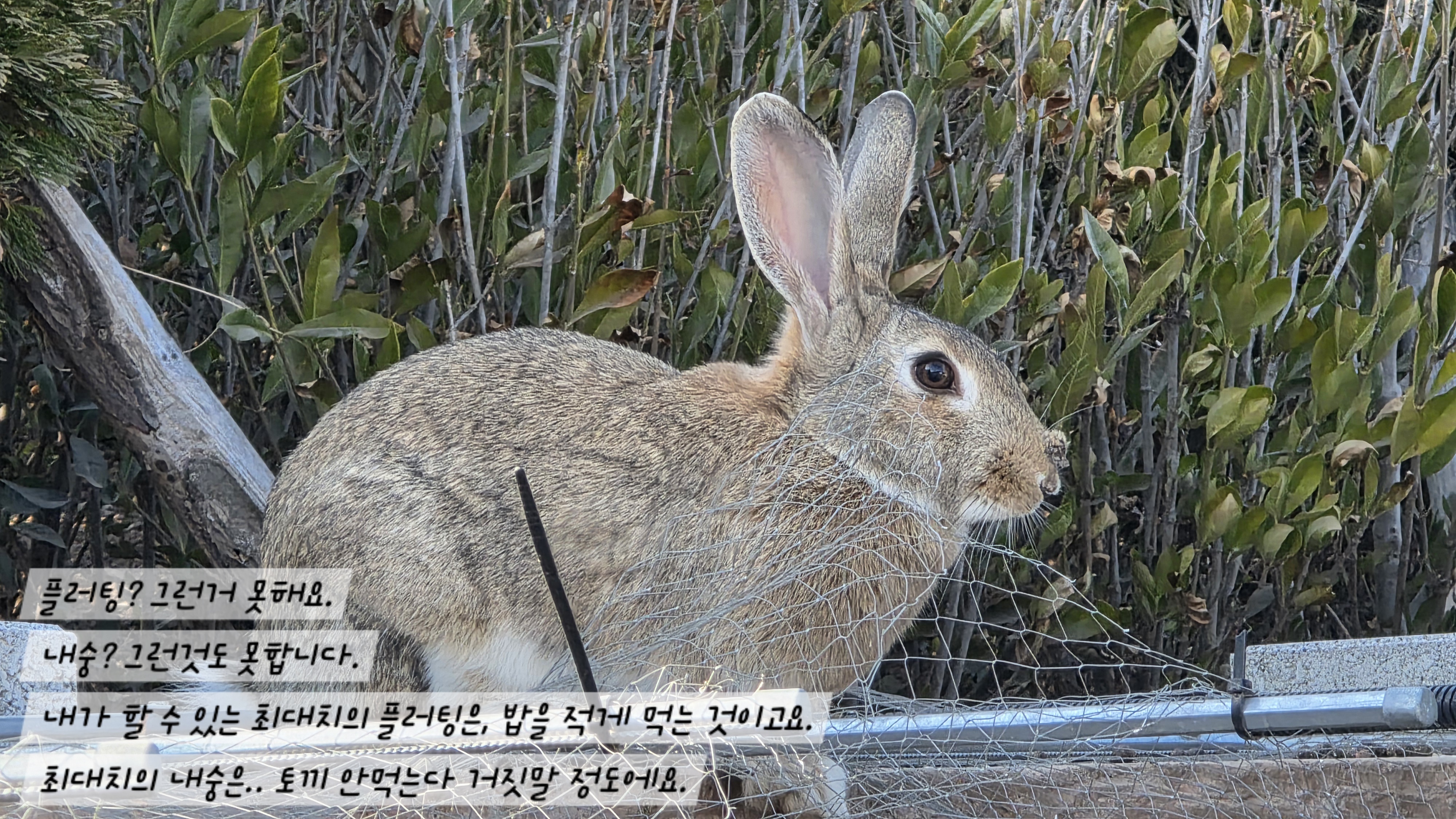 "토끼보다 당신이 더 좋아요. 가까이 와보실래요?"
