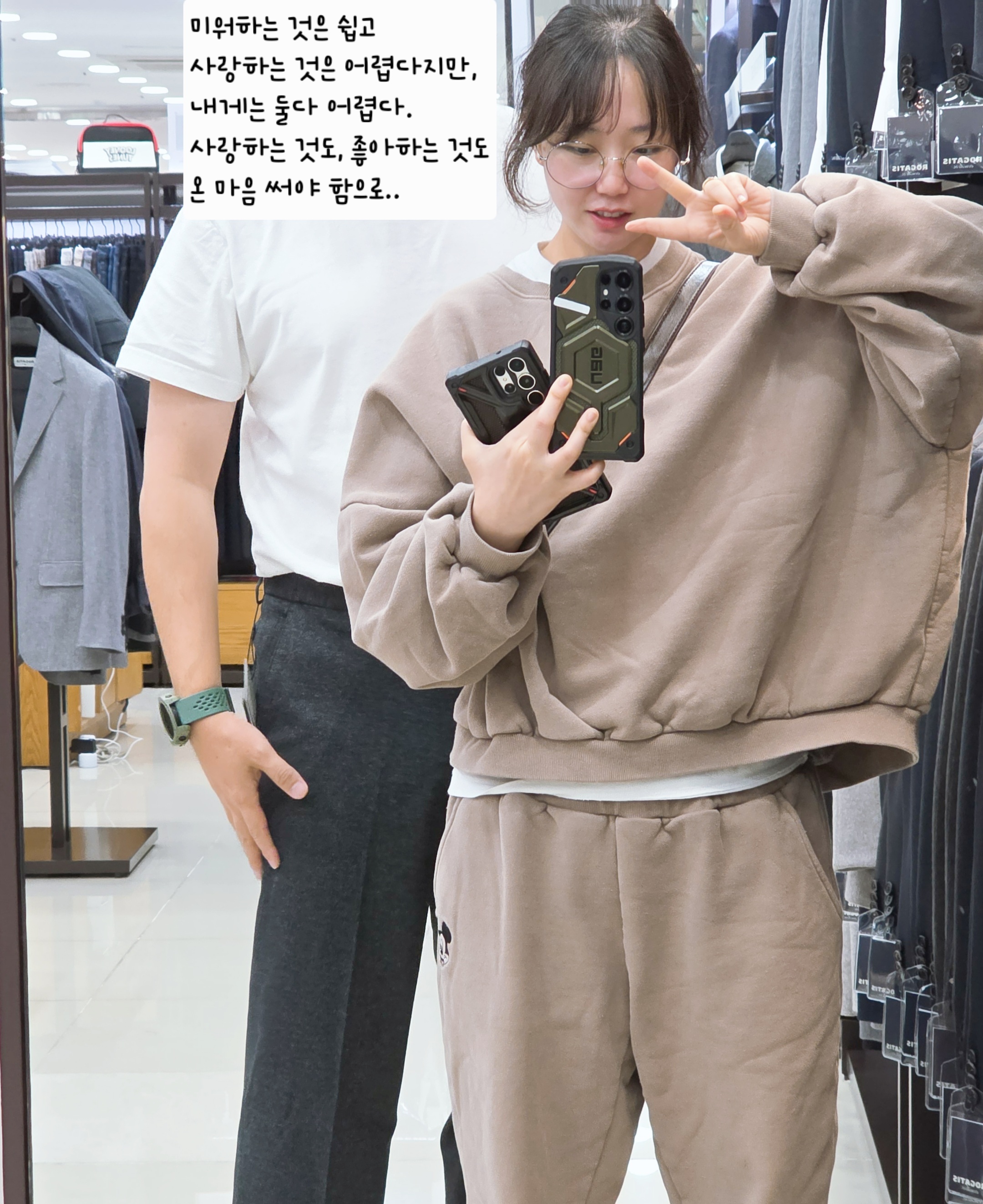 "다 샀어요.. 빨리 와요. 사람들이 많아서....."
